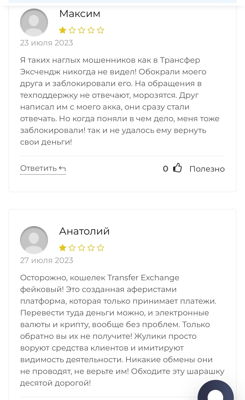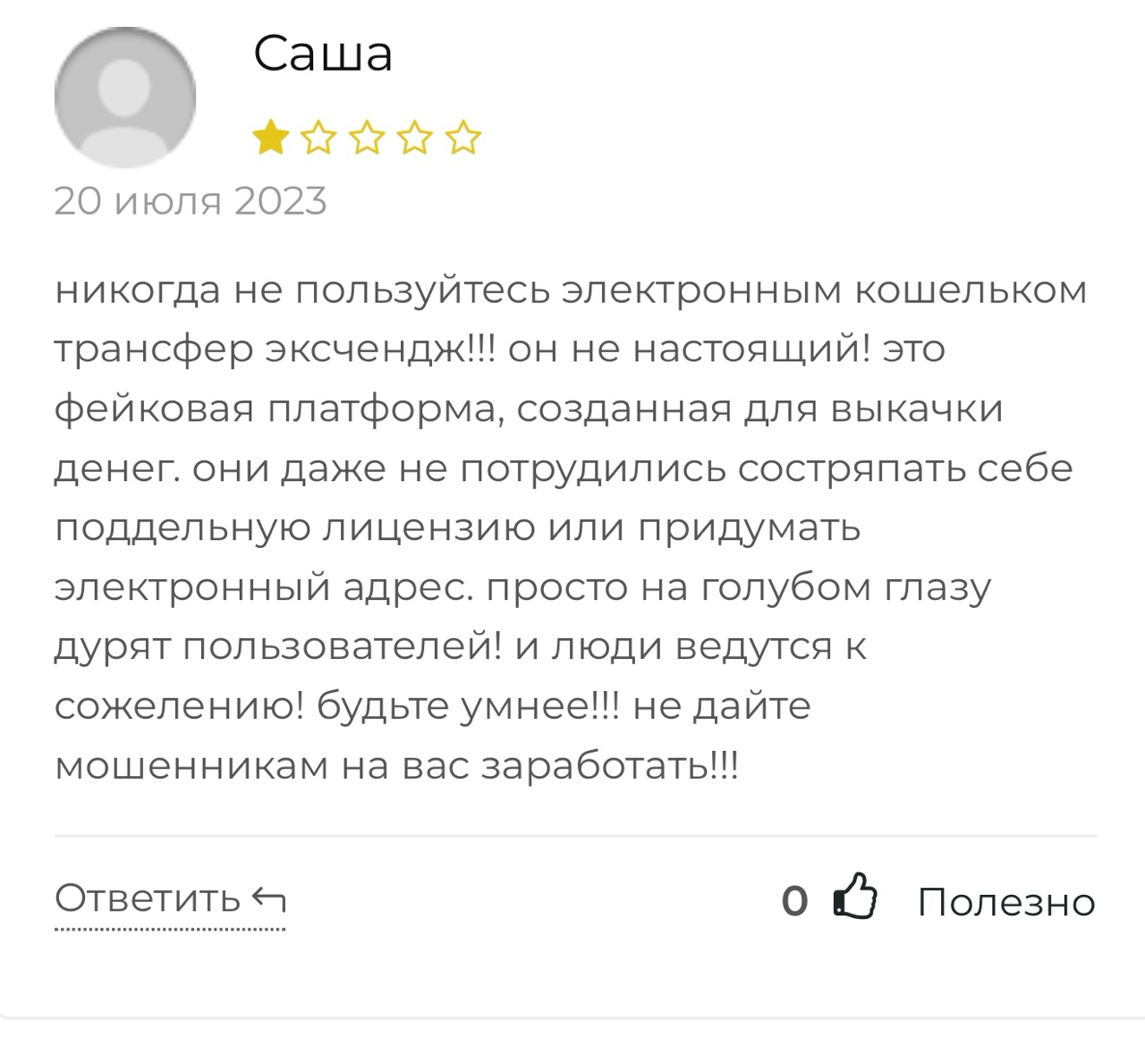 Несмотря на относительно короткий срок работы Transfer exchange, отзывы на него негативные. Причем их довольно много.