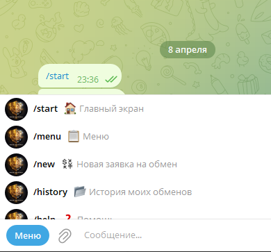 Фактически бот Travel Exchange не предоставляет полноценного функционала. После запуска пользователь видит только список команд. Инструкций или интерфейса для проведения обмена нет. Бот ограничивается отображением меню и не открывает дополнительные разделы. Это делает невозможным полноценное использование сервиса.