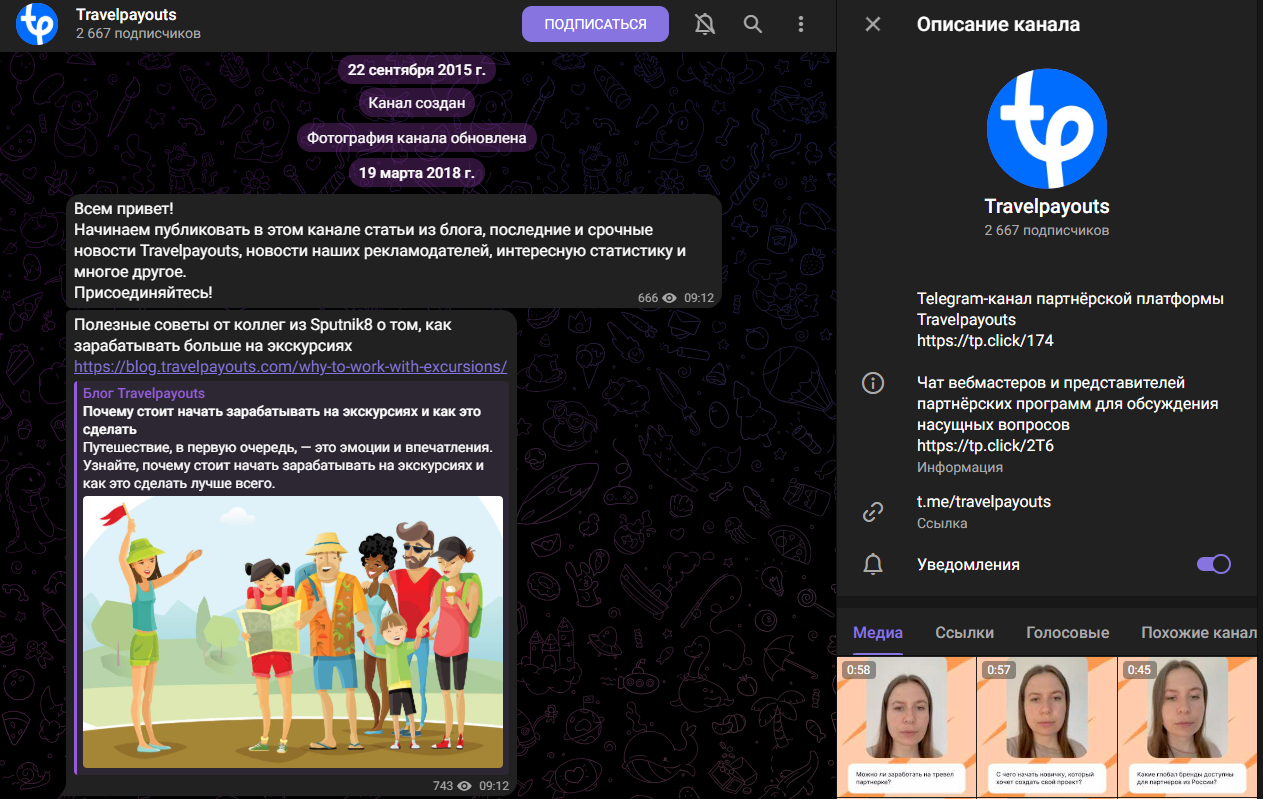 На декабрь 2025 года на телеграмм-канал Travel Payouts подписано 2 667 человек, но охваты стабильно держатся на отметке 600-700, что указывает на вероятную накрутку аудитории. Пользователи могут оставлять комментарии и быстрые реакции, но именно сам сервис никто не обсуждает. В основном, подписчики делятся полезными сервисами из индустрии блогинга.