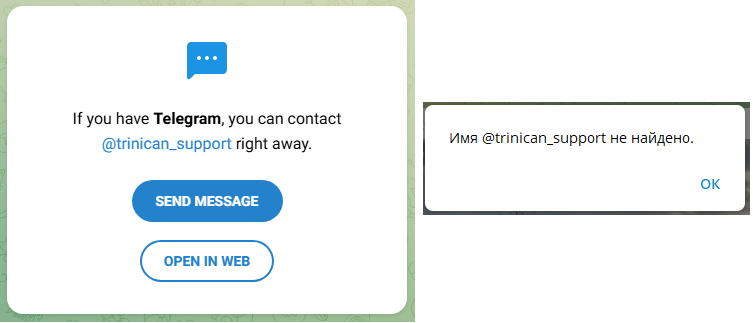 - Аккаунт техподдержки Trinican Support удалила администрация Telegram.