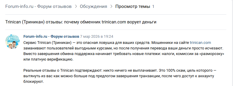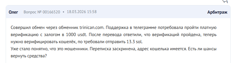 Что не так с криптообменником Trinican: обзор площадки и проверка на скам, направления обмена и отзывы клиентов о работе «Триникан»
