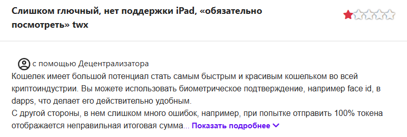 У клиента по имени Децентрализатор негативное отношение к платформе. Главный недостаток для него – это технические проблемы при оформлении заявки на перевод токенов.