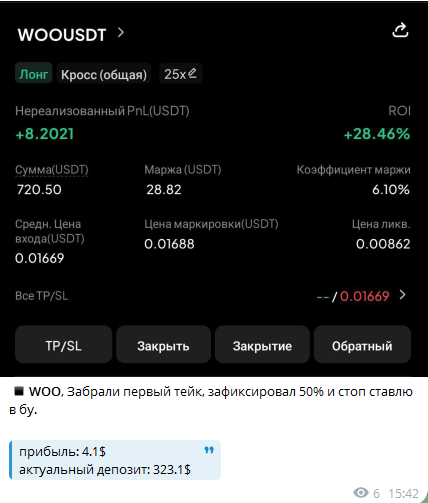 Автор телеграм-группы для профессиональной торговли криптовалютами на рынке «Тттейкер» выкладывает в ленте канала статистику своей деятельности на биржах. Разработчик метода увеличения профита утверждает, что его сигналы по тейкам и shorts позволяют гарантированно увеличивать доход, поэтому он по доброте душевной делится с публикой бесплатными ценными данными.