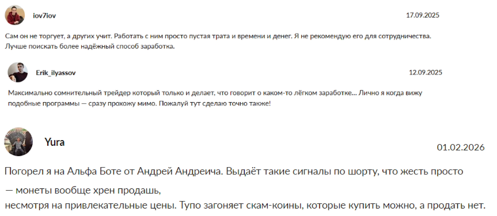 - об анонимном организаторе trade сообщества в TG люди оставляют в сети негативные отзывы.