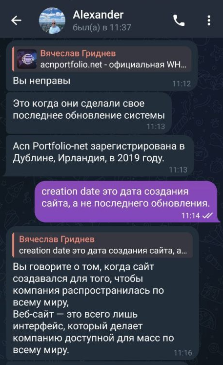 - Когда ему указывают на данные WHOIS, согласно которым домен создан только в 2022 году, он начинает изворачиваться – рассказывает бред про «обновление системы» и «веб-сайт как интерфейс».
