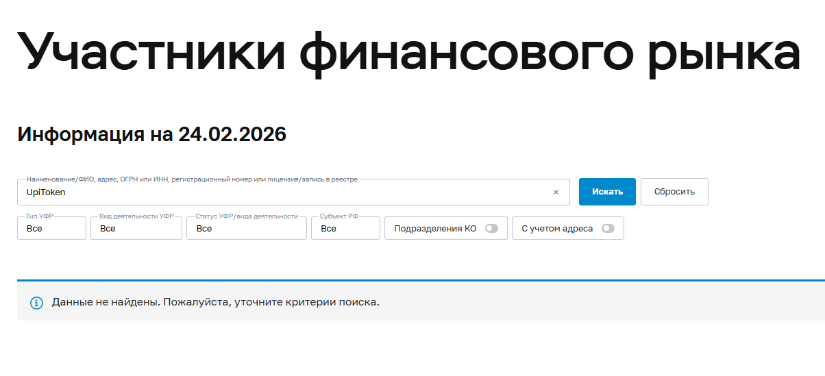 Домен upitoken com был создан в 2023 году, но нынешние владельцы купили его только 6 февраля 2026 года – заявление о 8 годах работы оказалось ложью.