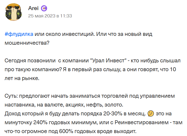 Сама Урал Инвест Капитал навряд ли имеет к этому отношение: мошенники постоянно пытаются замаскировать скам, представляясь сотрудниками реальных компаний.