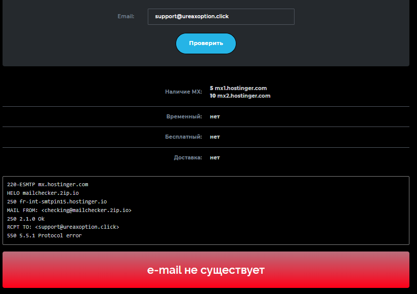 Узнать о вариантах обслуживания можно было бы у службы поддержки, написав на почту support@ureaxoption click, указанную на сайте UreaxOption click, но такого адреса на самом деле не существует.