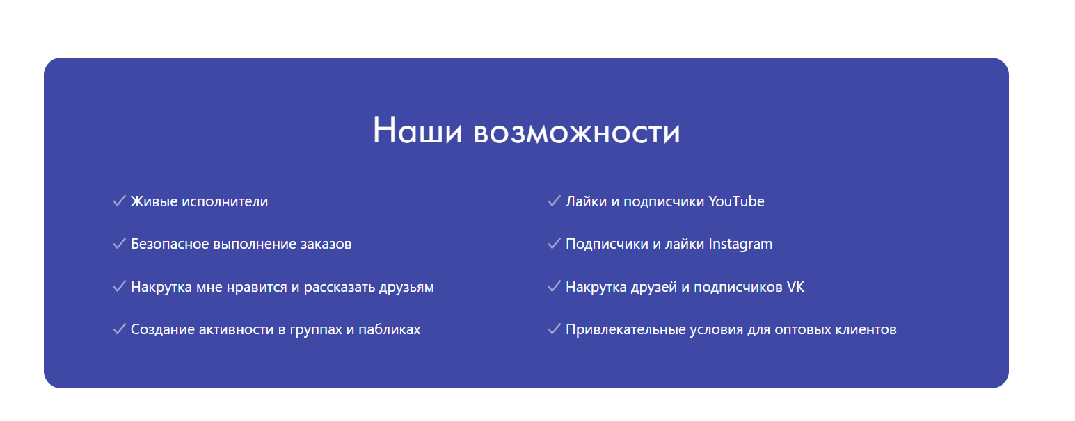 За это же время было накручено 100 000 000 подписчиков и лайков. Подобная статистика впечатляет, но остается верифицированной, поэтому безоговорочно доверять ей не стоит. В числе преимуществ «В Лайк», перечисленных на сайте: