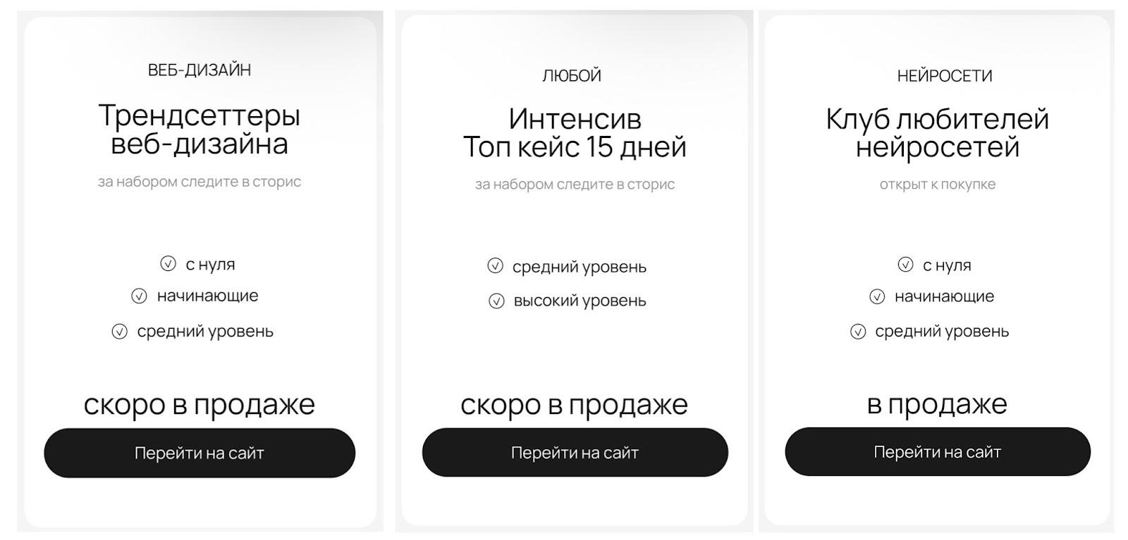 Программа по изучению нейросетей делится на более мелкие курсы в зависимости от генеративной модели: «ЧатГПТ», «Миджорни», «НаноБанана», ИИ-фотосессия. Стоимость зависит от выбранного направления и на март 2026 года составляет от 1500 ₽ до 2500 ₽. Доступ к любой из программ дают на 6 месяцев, но при желании срок можно пролонгировать.
