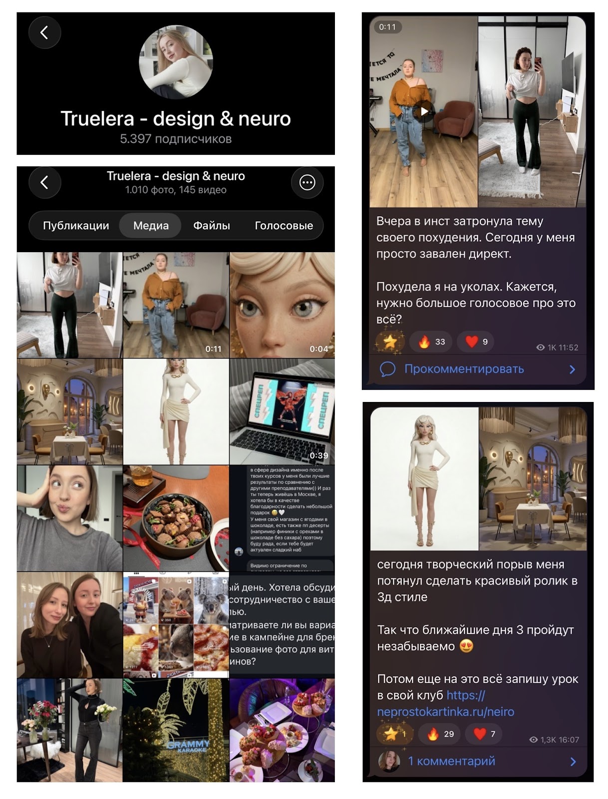Но также мы вышли и на другой паблик, наполненный связанным контентом. Только профессиональная тема сильно разбавлена личными постами. Скорее этот канал больше можно назвать личным блогом, который только частично касается работы с ИИ.