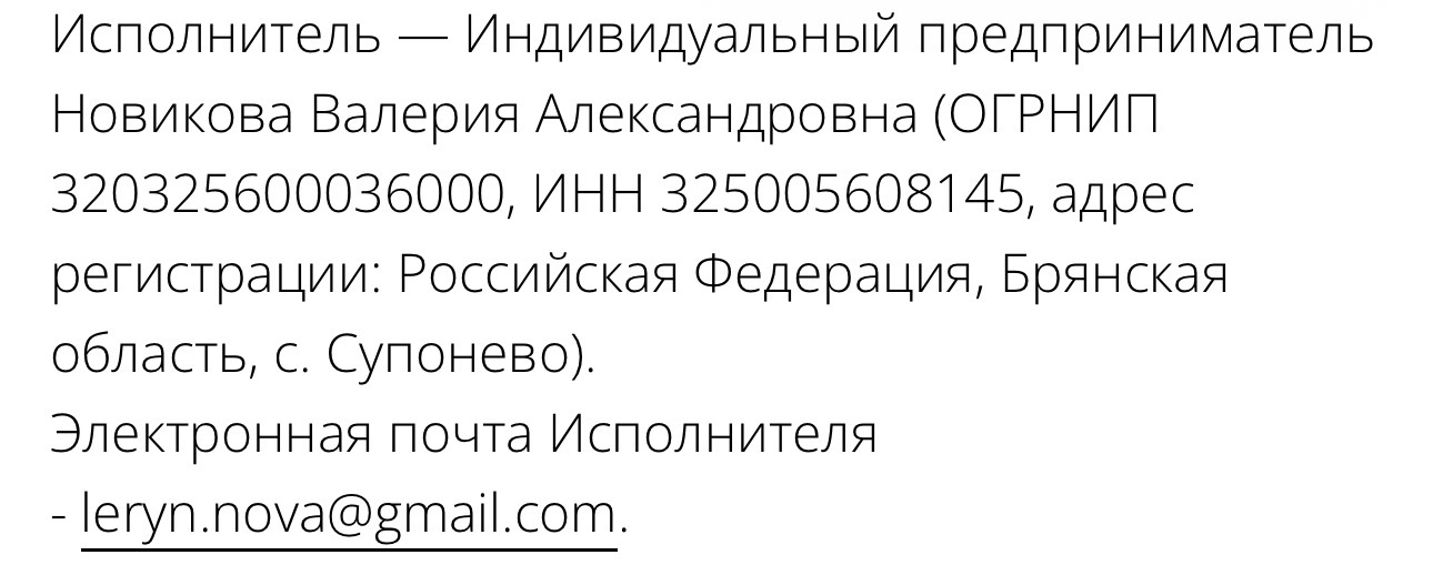 Обсудим работу Новиковой с точки зрения законности. Здесь у нее все в порядке — коуч зарегистрирована в качестве индивидуального предпринимателя со всеми сопутствующими атрибутами.