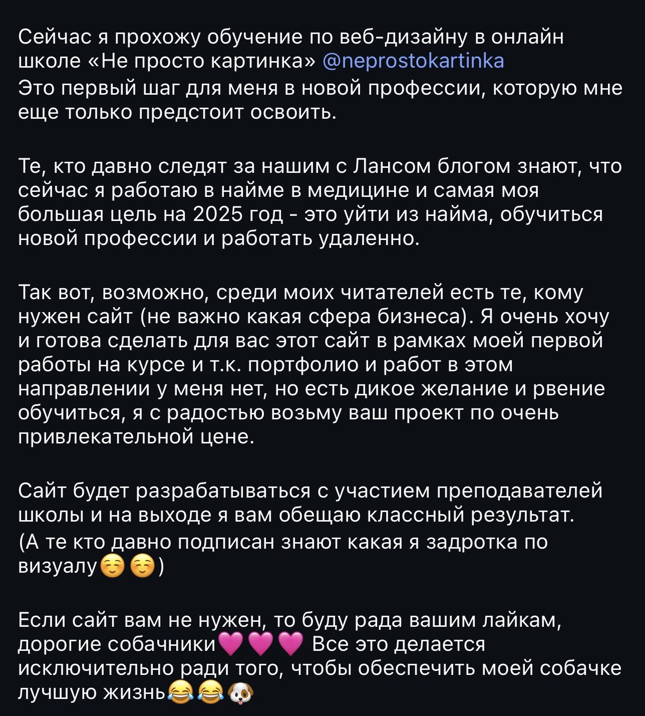 В пакет обучения входят не только сами материалы, но еще их обновление, участие в телеграмм-чате с другими студентами и возможность общаться с автором в формате вопрос-ответ.