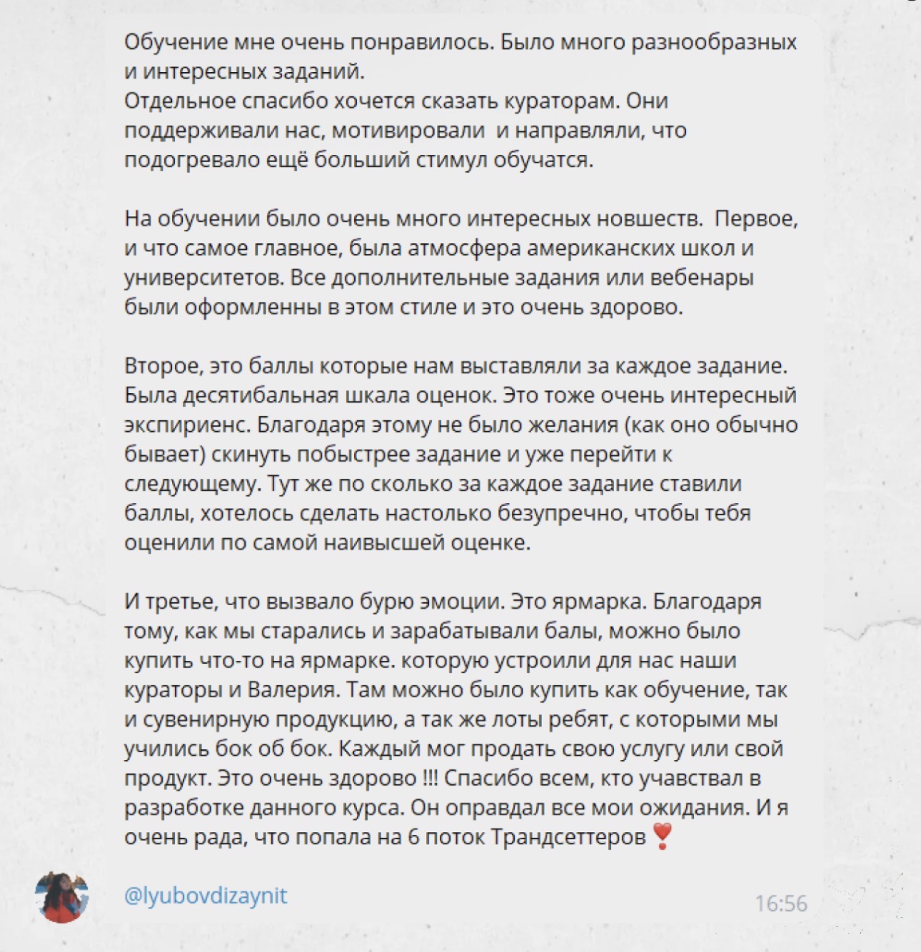 Если вы покупали обучение на платформе Валерии Новиковой или воспользовались сливом курса Truelera, оставьте свой отзыв об этом образовательном продукте. Чтобы подобрать платформу для обучения другим видам деятельности, читайте другие обзоры, подготовленные нашими авторами.