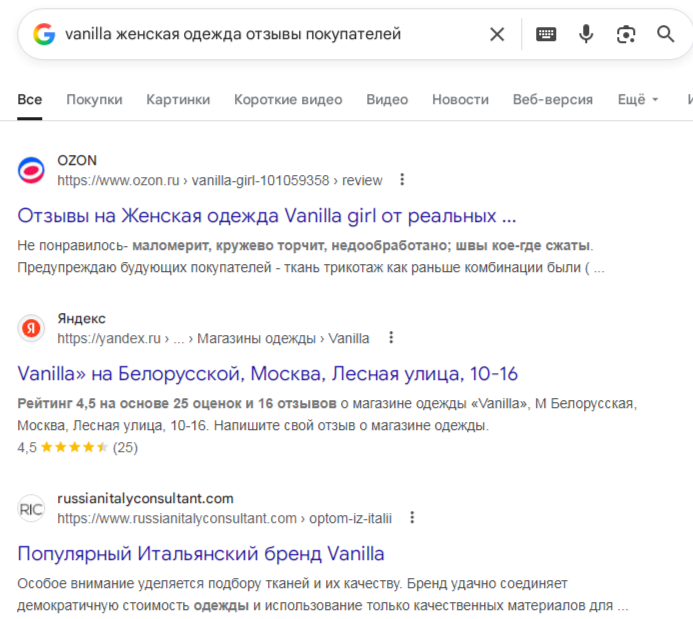 По итогу, ни одного ни положительного, ни отрицательного отзыва о проекте «Ванилла Женская Одежда» мы не нашли. Если это был реальный магазин, он бы имел успешную репутацию, официальное оформление и прозрачность в работе, а его создатели вели себя ответственно.