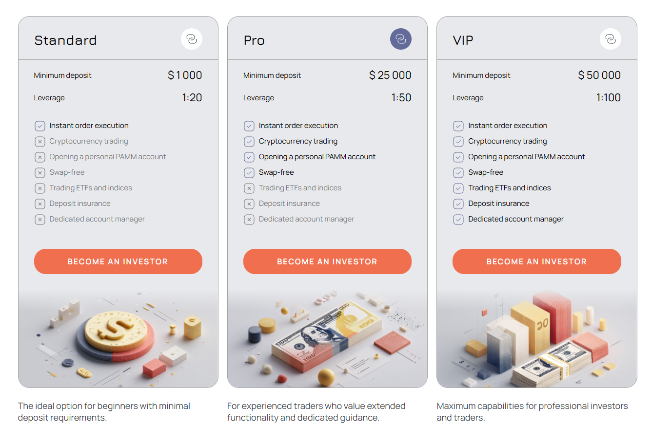 Что же касается трейдинга, то пользователю предлагают выбрать тариф:
