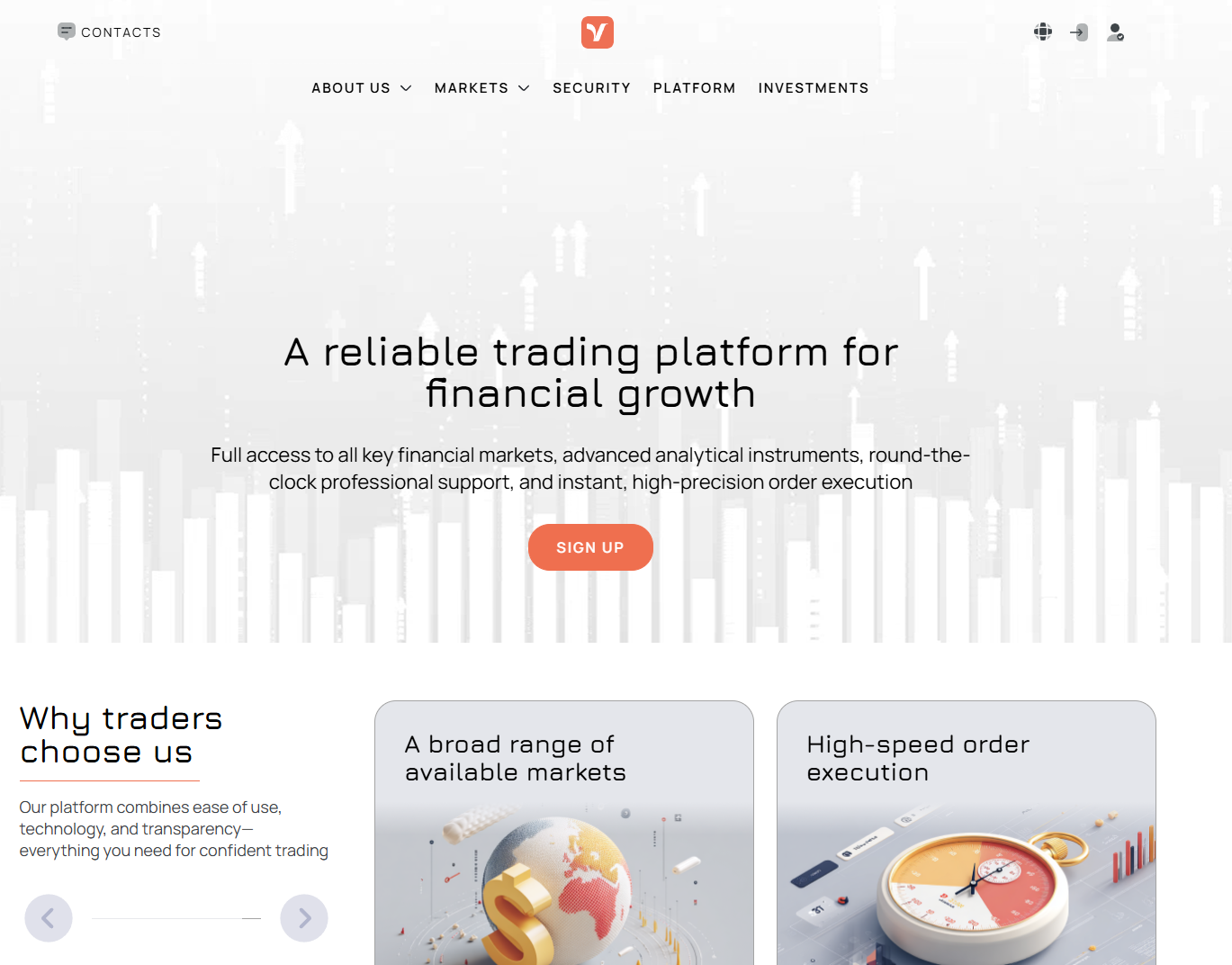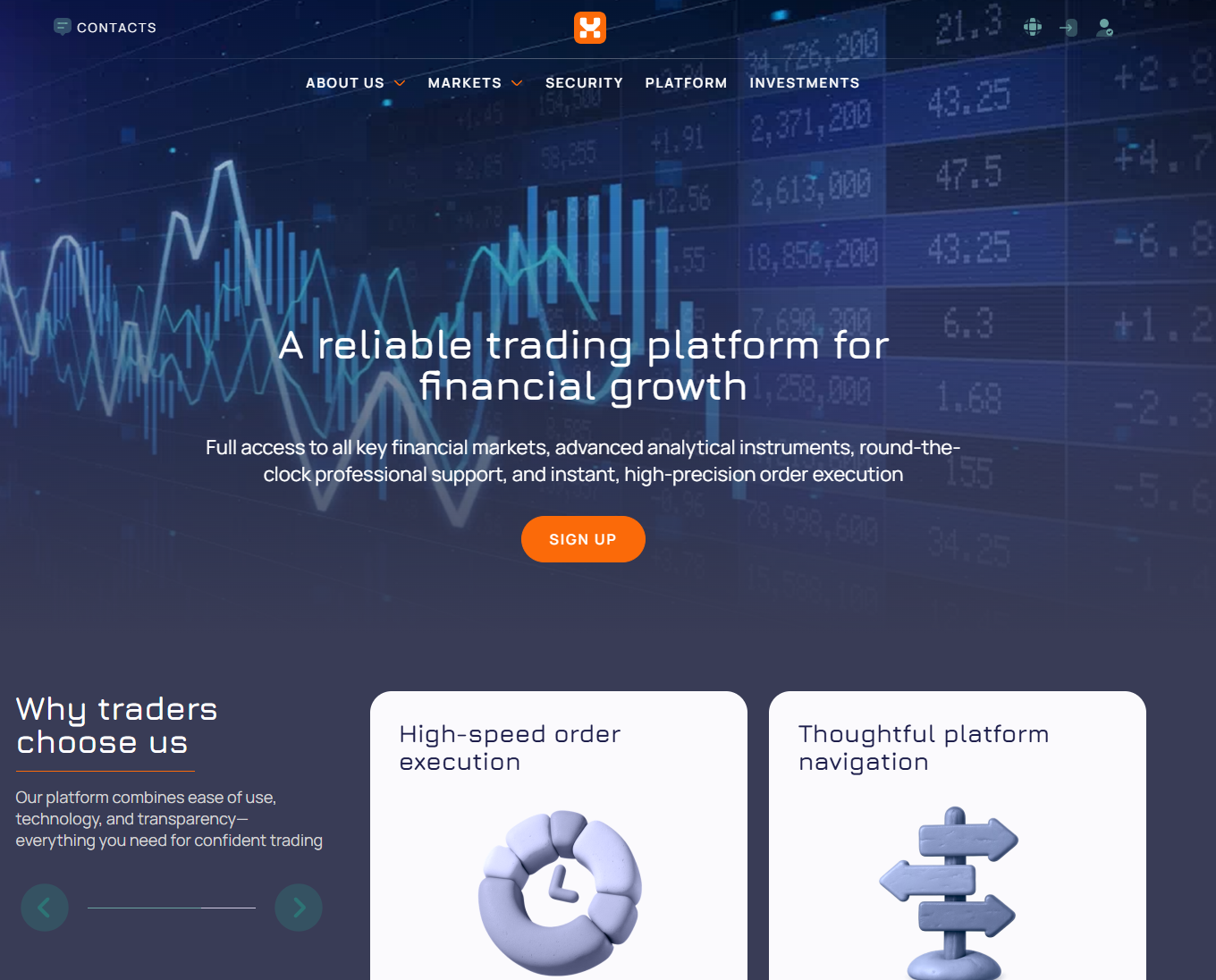 Все дело в том, что данный сайт является обычной фейковой платформой-однодневкой. Его клоны появляются в сети буквально каждую неделю. У них слегка меняется интерфейс, но в целом внешний вид практически такой же. Даже логотипы чем-то похожи, а содержание страниц почти идентичное. Так выглядит Главная этого брокера: