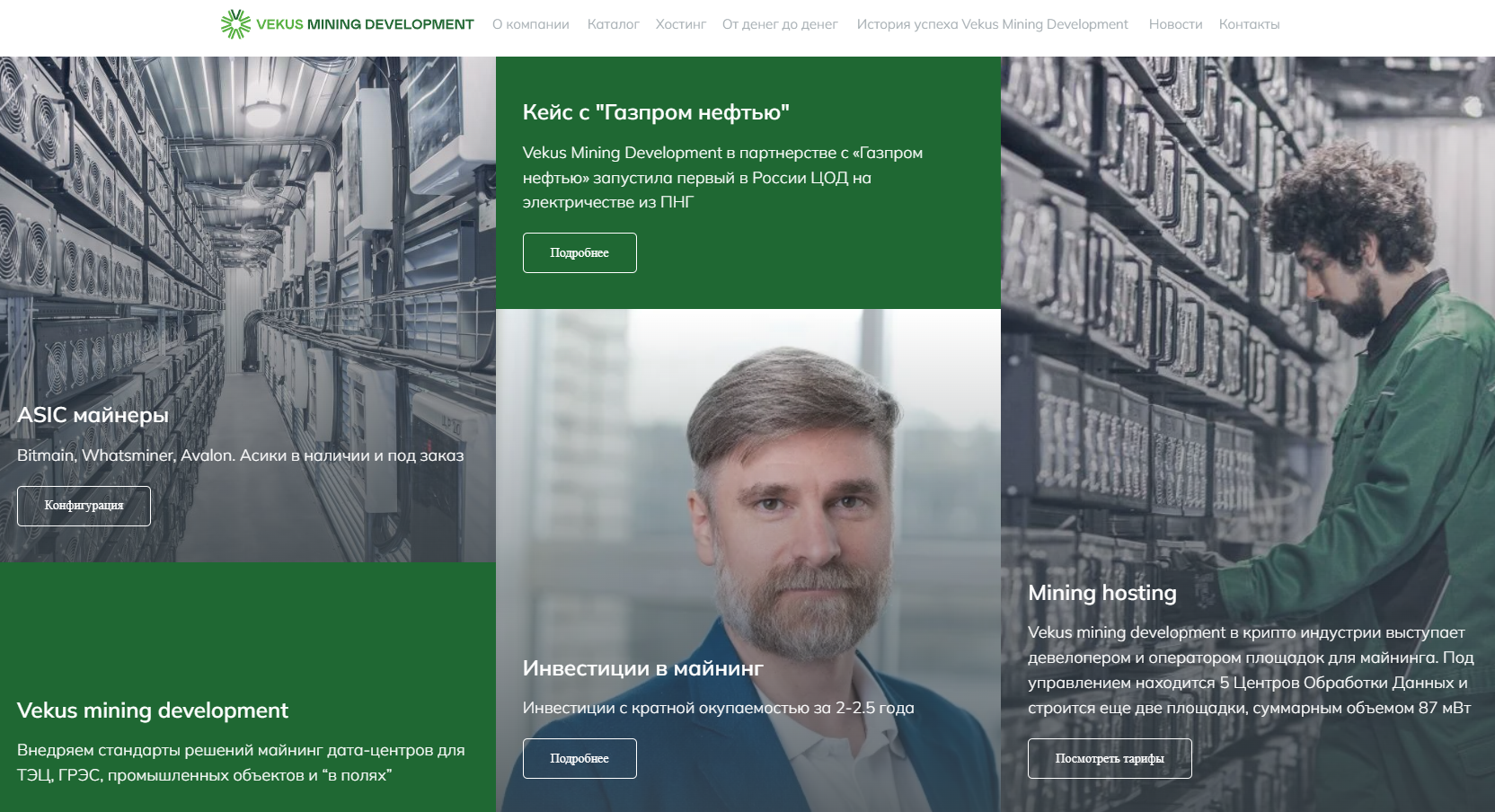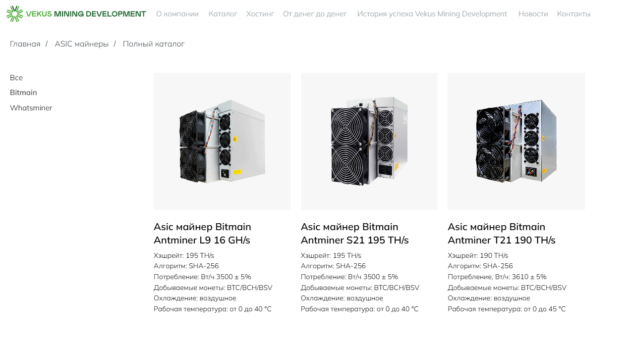 Векус Майнинг – компания, специализирующаяся на предоставлении решений для майнинга цифровых активов. Пользователям предлагают возможность заказать создание фермы под ключ, воспользоваться хостингом или купить оборудование. Дополнительно есть предложение для инвесторов с доходностью более 50% в год. Проверим работу платформы, чтобы определить, можно ли заработать с помощью компании Vekus Mining Development.