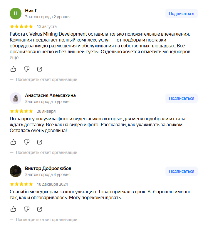 Отзывы о vekus mining ru
