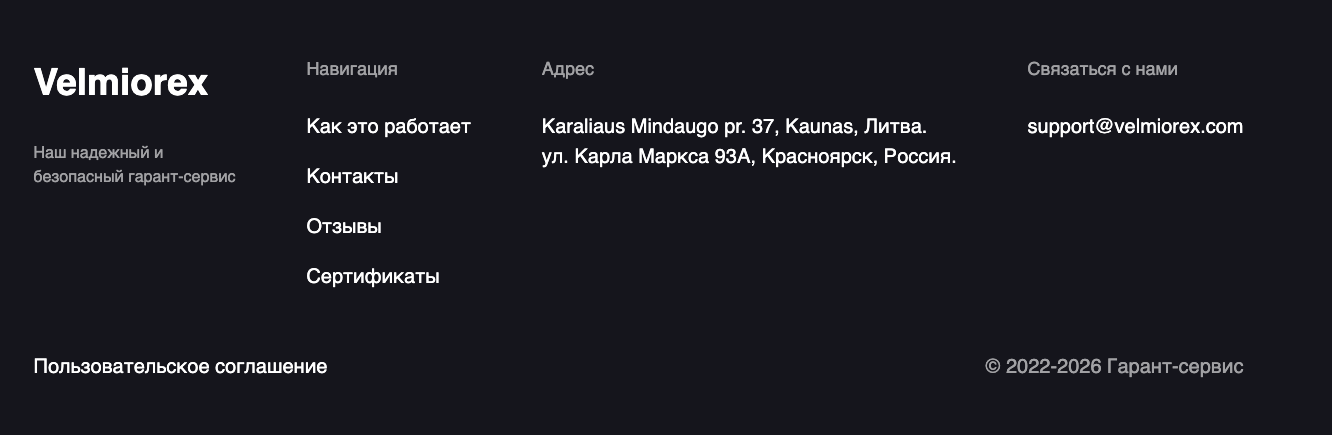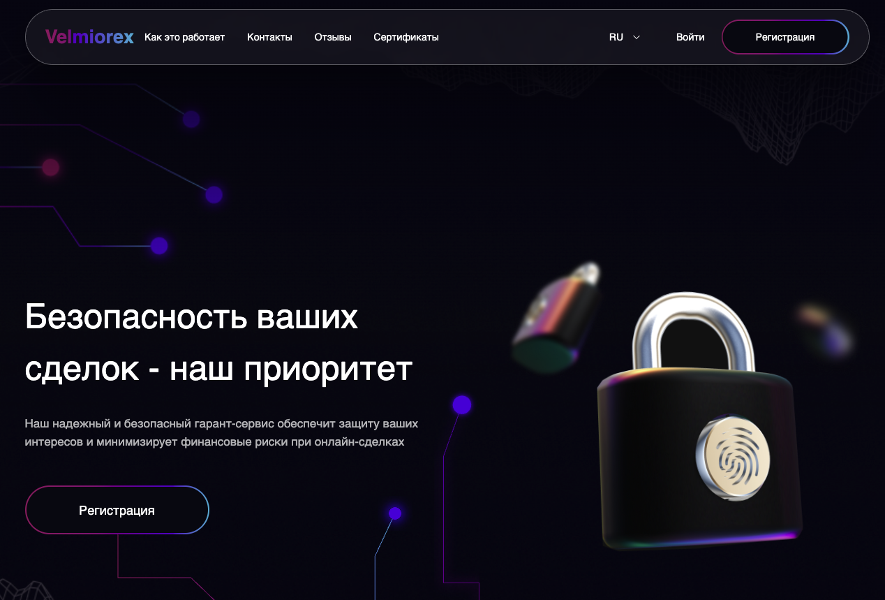 Velorex – гарант-сервис, с помощью которого пользователям обещают возможность обеспечить безопасность сделок купли-продажи любых товаров и услуг онлайн. При этом информации о самом гаранте особо нет, сведения об условиях сотрудничества и тарифах отсутствуют. Поэтому мы проверили работу платформы и делимся результатами в обзоре.