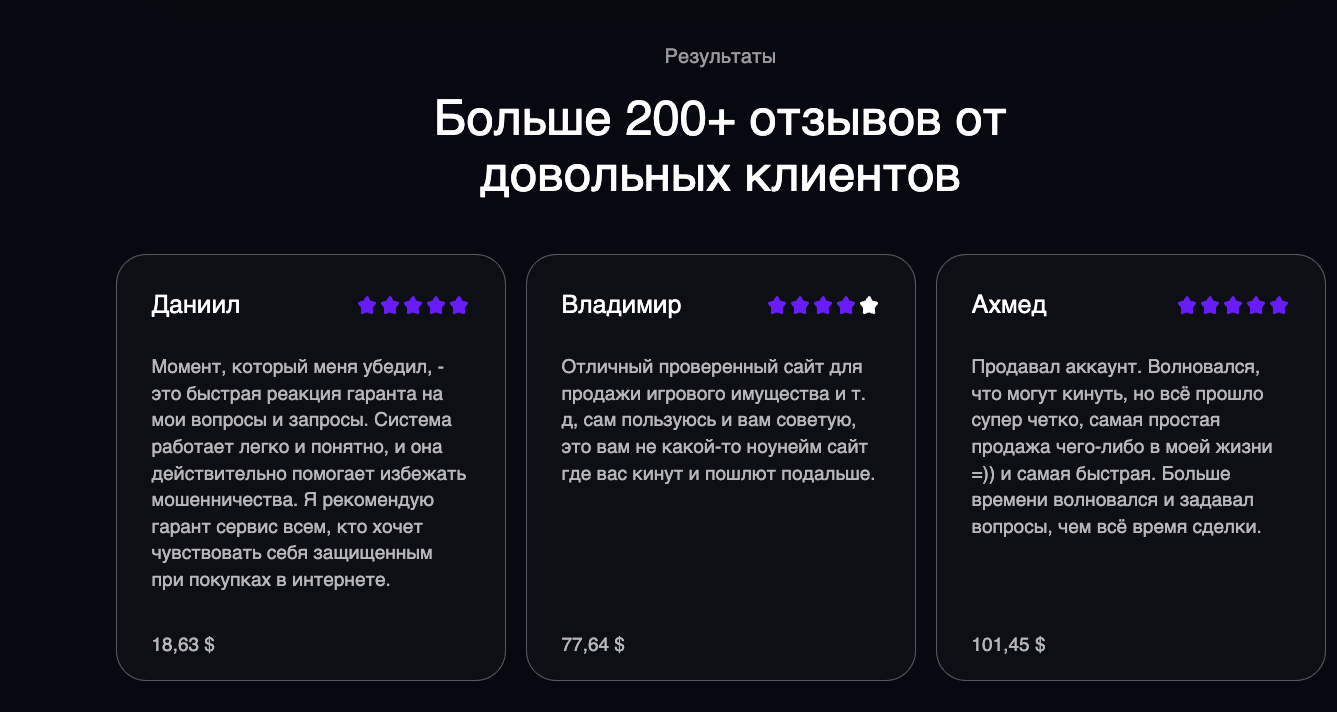 На сайт площадки привлекают пользователей некие продавцы или покупатели цифровых товаров. Они рассказывают о том, что им нужны гарантии безопасности сделок, а этот сервис – лучший в этом плане.