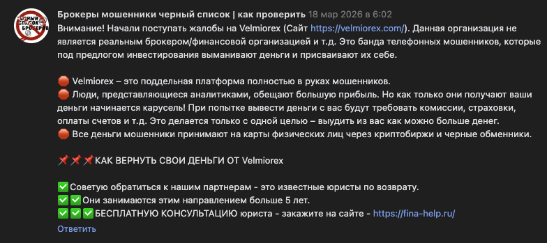 Velbrio Ltd обещает нулевые комиссии и молниеносное исполнение сделок, но на деле это очередной развод. Фейковые лицензии, липовые контакты и отсутствие реальных отзывов — типичный скам. ([ ](