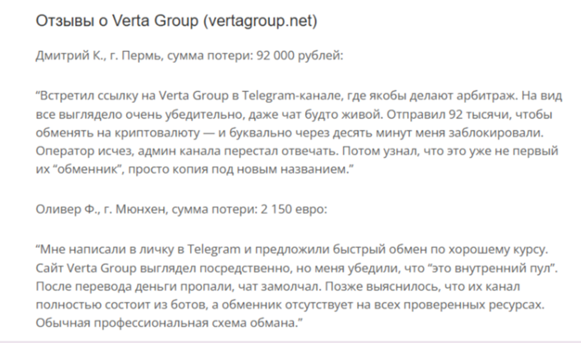 Обзор обменника Vertagroup net: отзывы, услуги, проверка безопасности