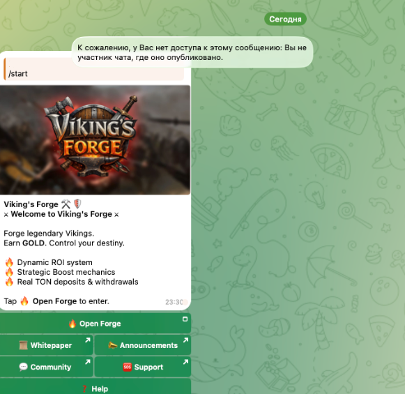 Приложение на базе Telegram mini apps Vikings Forge – это ролевая игра с возможностью зарабатывать ТОН за выполнение определенных действий. Авторы рассказывали о том, что обеспечивают высокую доходность игрокам за счет передовых решений для инвестиций. Но сервис Vikings Forge в Телегармме не выглядит надежным. В обзоре расскажем о нем более детально.