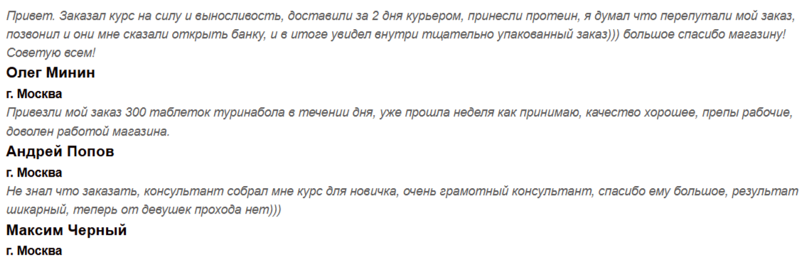 В сети встречаются положительные отзывы о товарах из магазина «Вип Стероид». Покупатели отмечают, что: