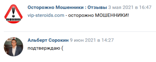 Но на других сайтах отзывы о «Вип Стероид», в основном, отрицательные. Этот магазин пользователи называют мошенническим. Клиенты вносят предоплату, но ничего не получают.