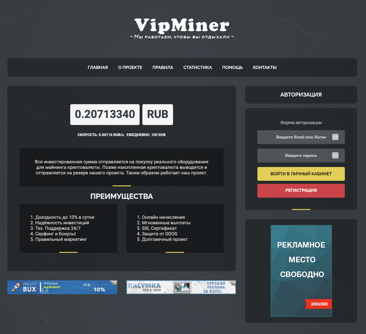 VIPMiner обещает 200% за 20 дней? Даже пирамидам такое не снилось! Скам на лицо, держитесь подальше.