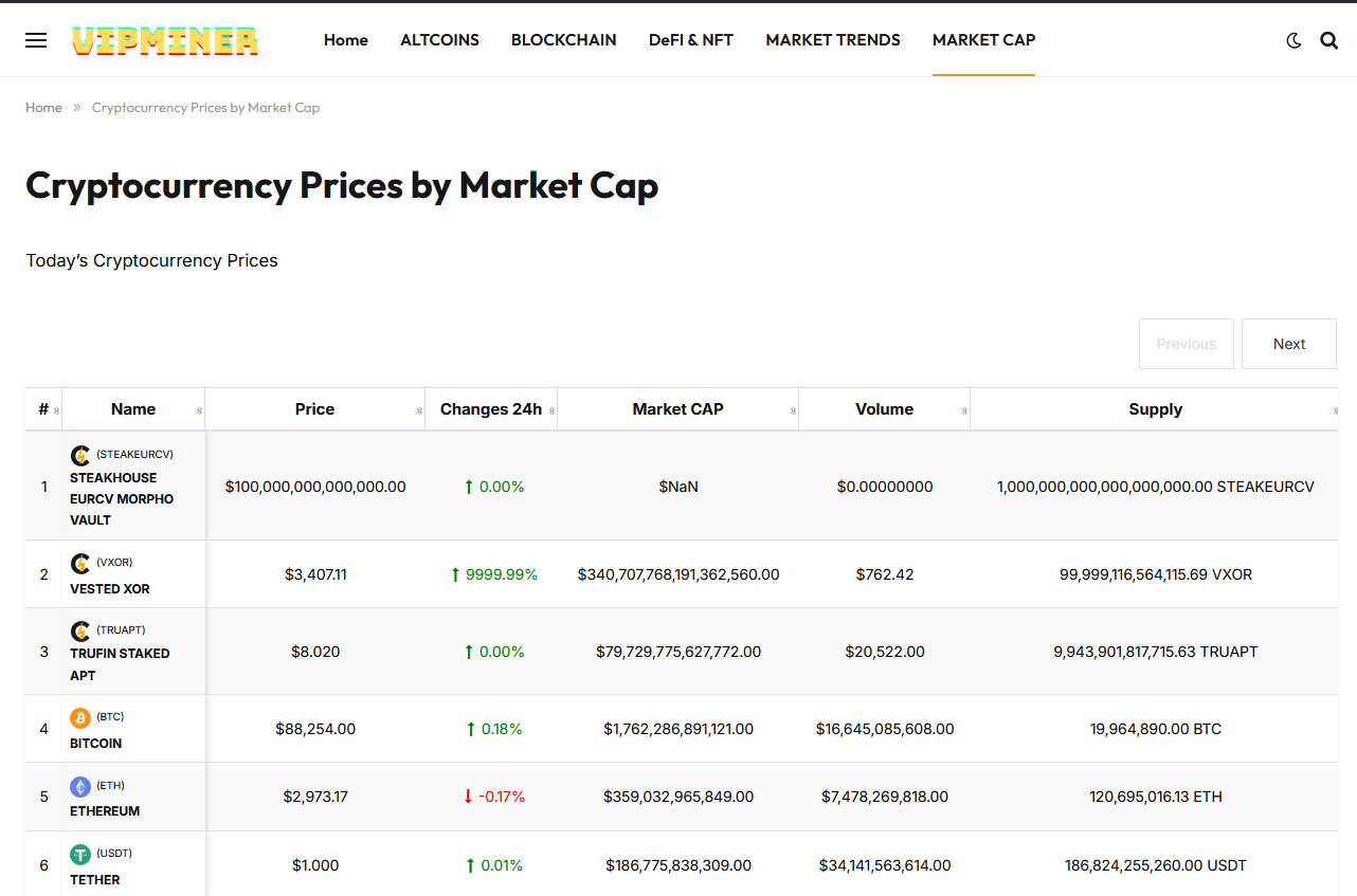 Параллельно «Випмайнер» — это мониторинг, на котором можно узнать текущие котировки криптоактивов, их рыночную капитализацию, общую эмиссию и другие важные показатели на рынке.