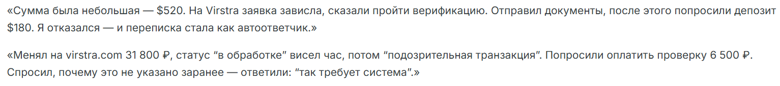Обзор криптообменника Virstra: отзывы пользователей о сервисе и анализ деятельности ресурса