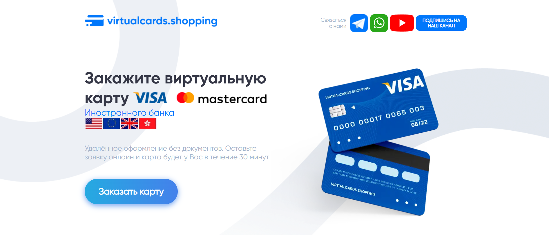 В сети у сервиса Virtualcards Shopping строго положительная репутация и ни одного негативного комментария, в котором его создателей называли бы мошенниками. Эта платформа предлагает онлайн-оформление банковских карт для оплаты услуг, недоступных в России. Пользователям обещают быстрое оформление карты иностранного банка всего за 30 минут.