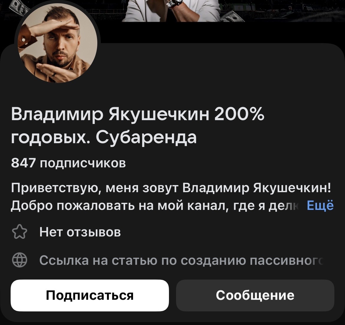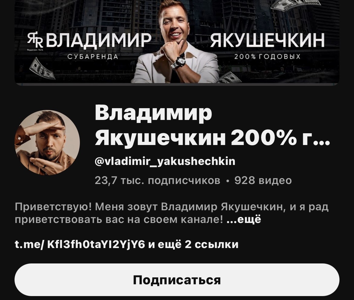 Очередной «эксперт» обещает 200% годовых на субаренде коммерческой недвижимости. Звучит как сказка для наивных. В реальности, такие доходы недостижимы без огромных рисков. Владимир Якушечкин утверждает, что управляет сотнями объектов, но где доказательства? Скорее всего, это очередная схема, где зарабатывает только организатор, а инвесторы остаются с убытками. Не дайте себя обмануть!