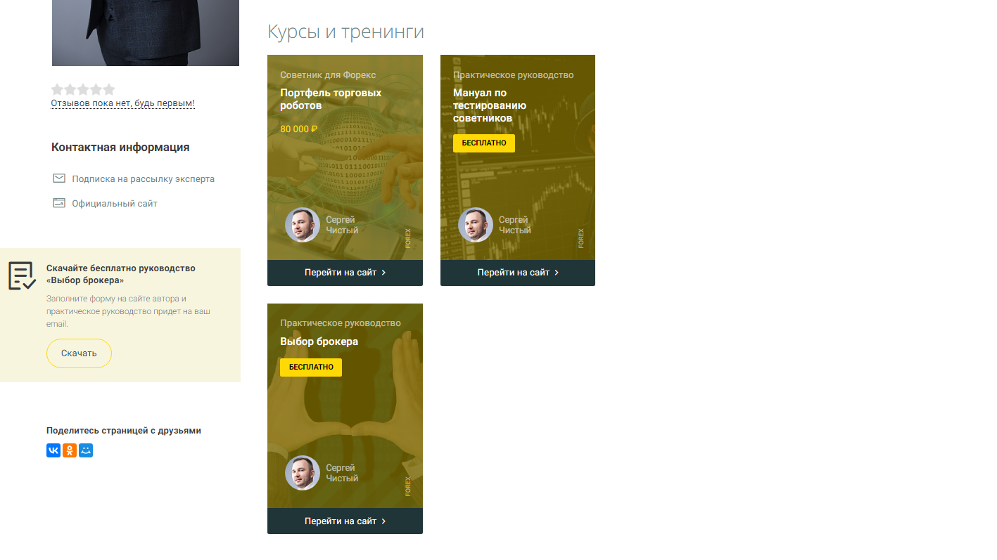 Помимо этого, обучение с участием Владислава можно найти на сайте образовательного проекта Трейдингс Ворлд. Например, ранее предлагались портфели советников стоимостью от 79 900 р. до 239 900 р.