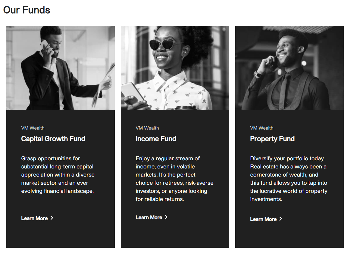 Со сведениями о возможных вариантах инвестирования на Vm Funds все получше. Пользователь может вложиться в “фонд роста капитала”, “доходный фонд” и “фонд недвижимости”. В первые два фонда можно вложиться от 500 барбадосских долларов, в последний – от 5 тысяч. Для перевода в USD необходимо умножить эти суммы на 2. Данных же о доходности на площадке нет, хотя это самое главное.