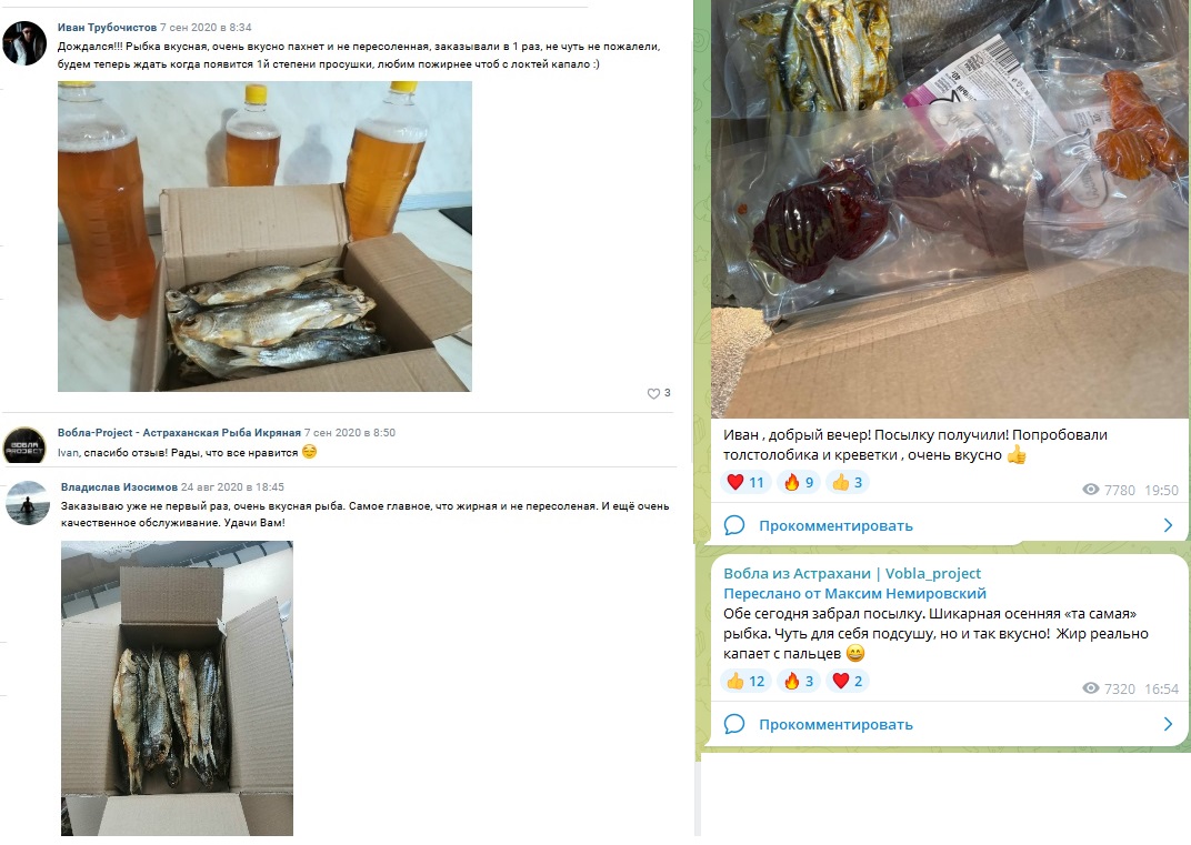 В ленте своих блогов администратор Иван Вобла размещает большое количество отзывов с благодарностями, где клиенты очень хвалят рыбку за настоящий астраханский вкус и отменное качество.