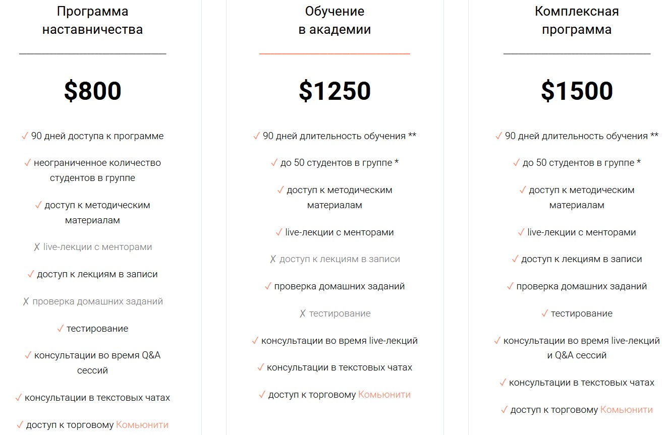 Обучающий курс от Вольдемара продается через сайт Btatrading academy, он стоит от $800 до $1500. В более дорогую версию включили проверку домашних заданий, индивидуальные созвоны с преподавателями и прохождение тестирования.