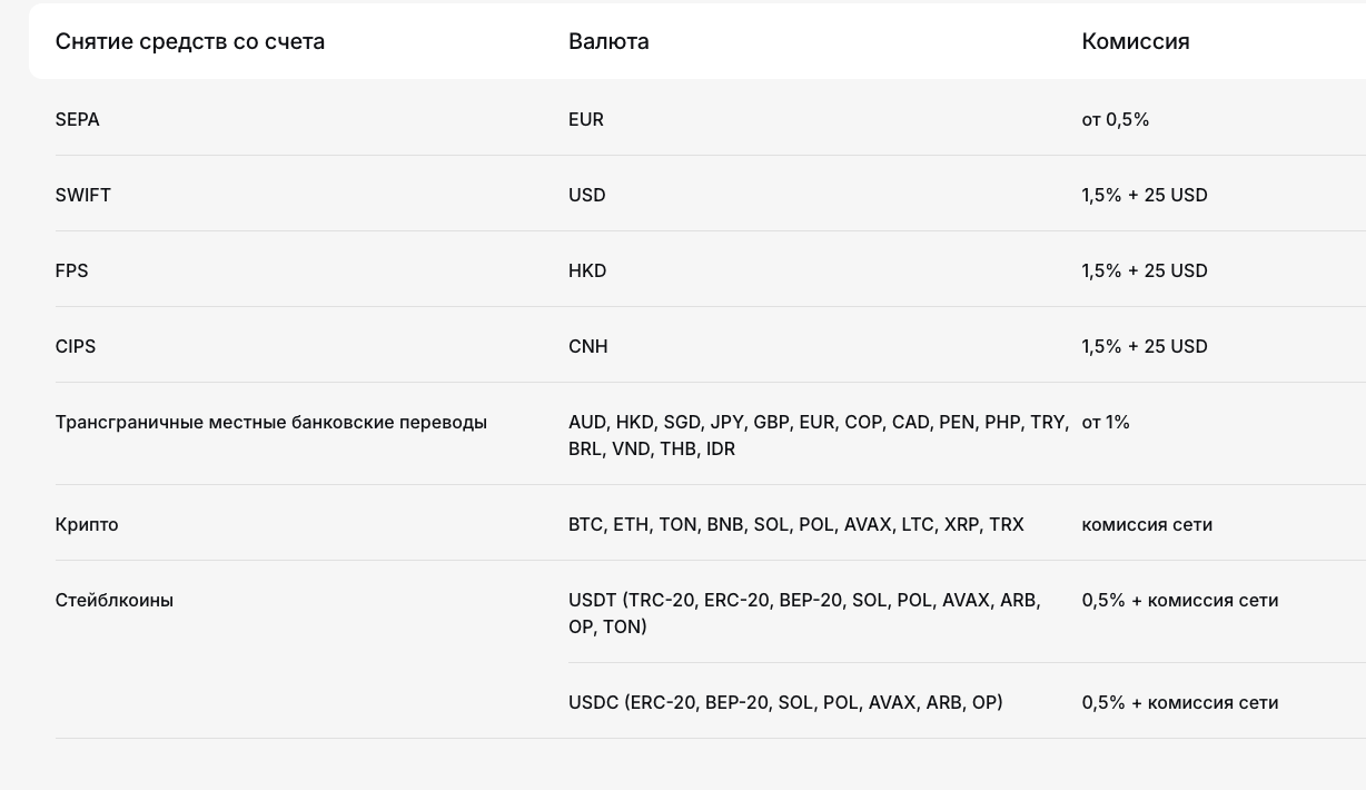 Офферы проекта можно разделить на предложения для частных лиц и бизнеса. Для физиков предоставляется достаточно стандартный крипто-фиатный кошелек с функцией обменника, а также возможность оформить цифровую карту. Про последнюю стоит сказать, что она работает далеко не везде. С учетом используемых платежных систем и решений несложно понять, что цифровая карта бесполезна для граждан РФ.