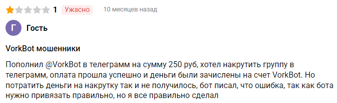 В интернете люди жалуются на обман со стороны разработчиков Vork bot.
