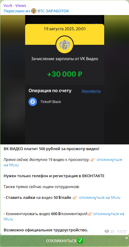 Авторы платформы Vork предлагают людям способ заработка, основанный на выполнении несложных заданий. Разработчики системы гарантируют получение клиентами выплат и демонстрируют положительных отзывы юзеров, участвующих в проекте. Мы решили проанализировать этот телеграм-портал и выяснить, безопасно ли взаимодействовать с ним.