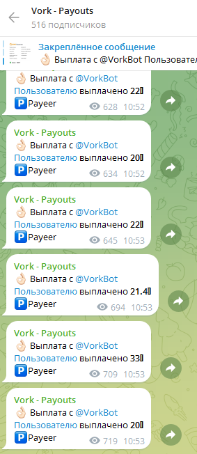 Организаторы бота создали специальный канал, на котором регулярно выкладываются уведомления о произведенных выплатах людям.