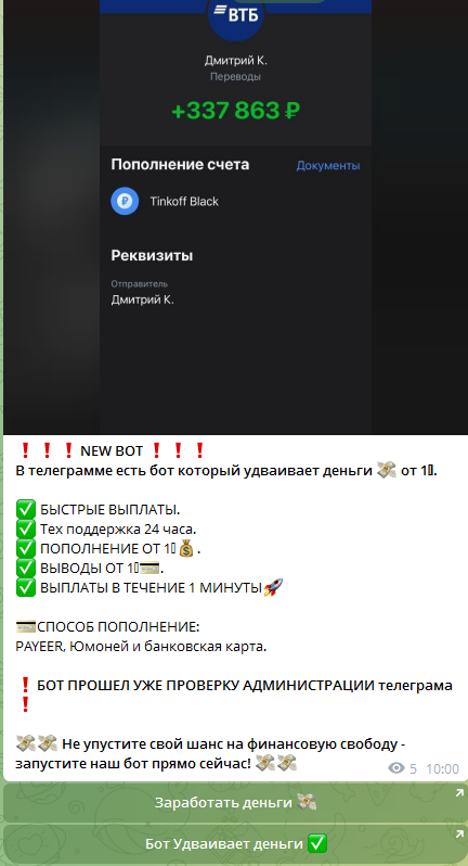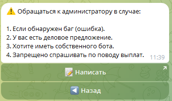 Владельцы платформы предупреждают, что к администратору тг-портала запрещено обращаться по поводу выплат. Создатели бота утверждают, что сервис работает уже больше 5 лет, и услугами площадки пользуется уже полмиллиона пользователей.