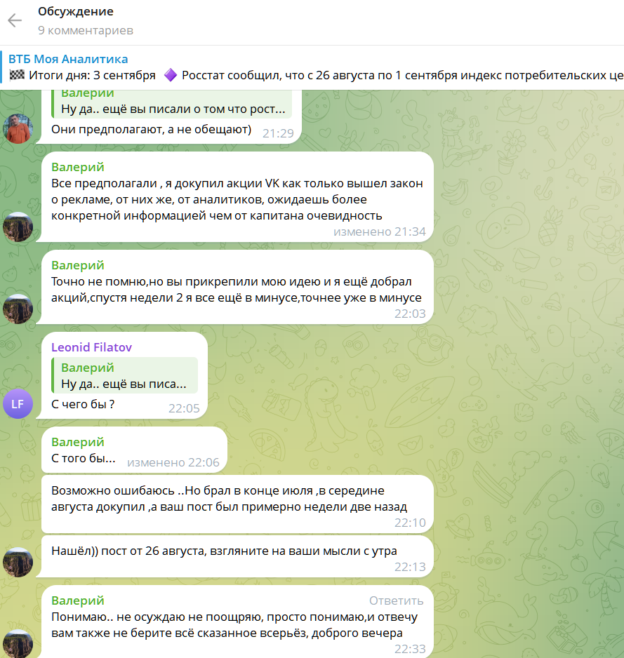 Комментарии под постами в ТГ канале показывают, что не все подписчики согласны с мнением автора по котировкам акций, прогнозам рынка ценных бумаг.