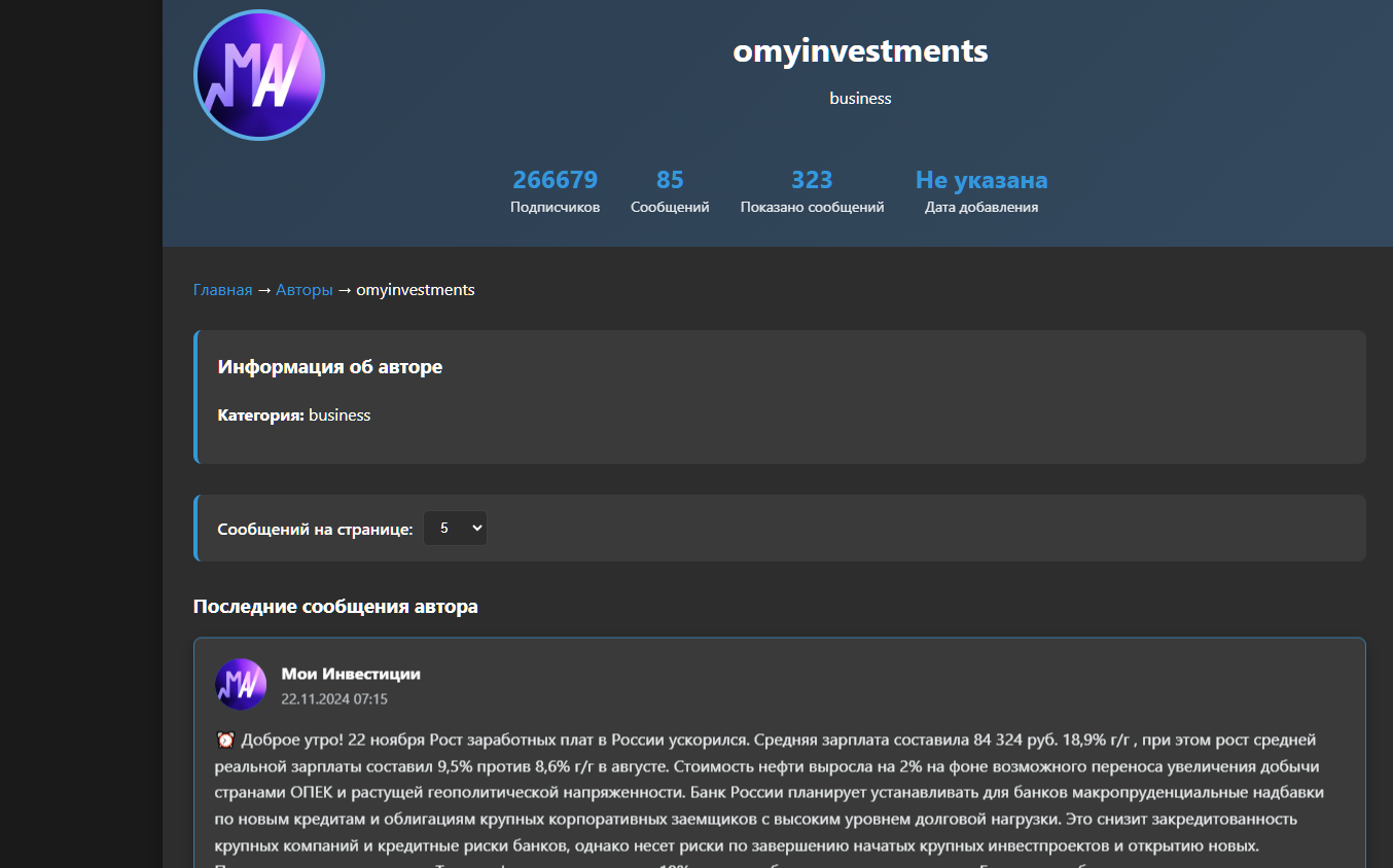 Это информационный проект позиционируется, как официально зарегистрированный в РКН. Но найти по регистрационному номеру название компании не удалось. Поиск по никнейму администратора канала omyinvestments дал интересный результат.