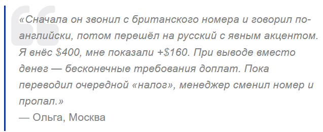Домены меняются каждые несколько недель. Старые сайты закрываются. После нескольких попыток получить деньги счета блокируют навсегда. Общая картина печальная – системное выкачивание денег под видом инвестиций.