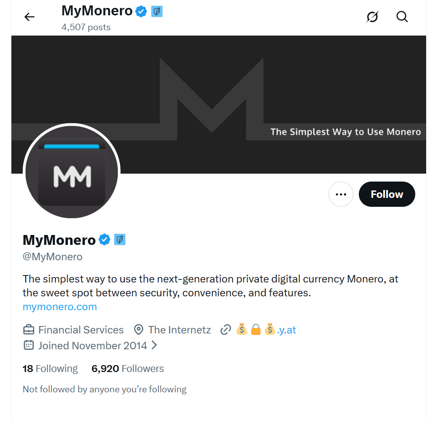Что касается социальной активности Mymonero Com, она крайне небольшая. В качестве основного проекта представлен профиль в Твиттере. Он был запущен еще в 2014-м. К нему подписано около 7 тыс. фолловеров. Правда, страница не наполняется информацией еще с ноября 2025-го.