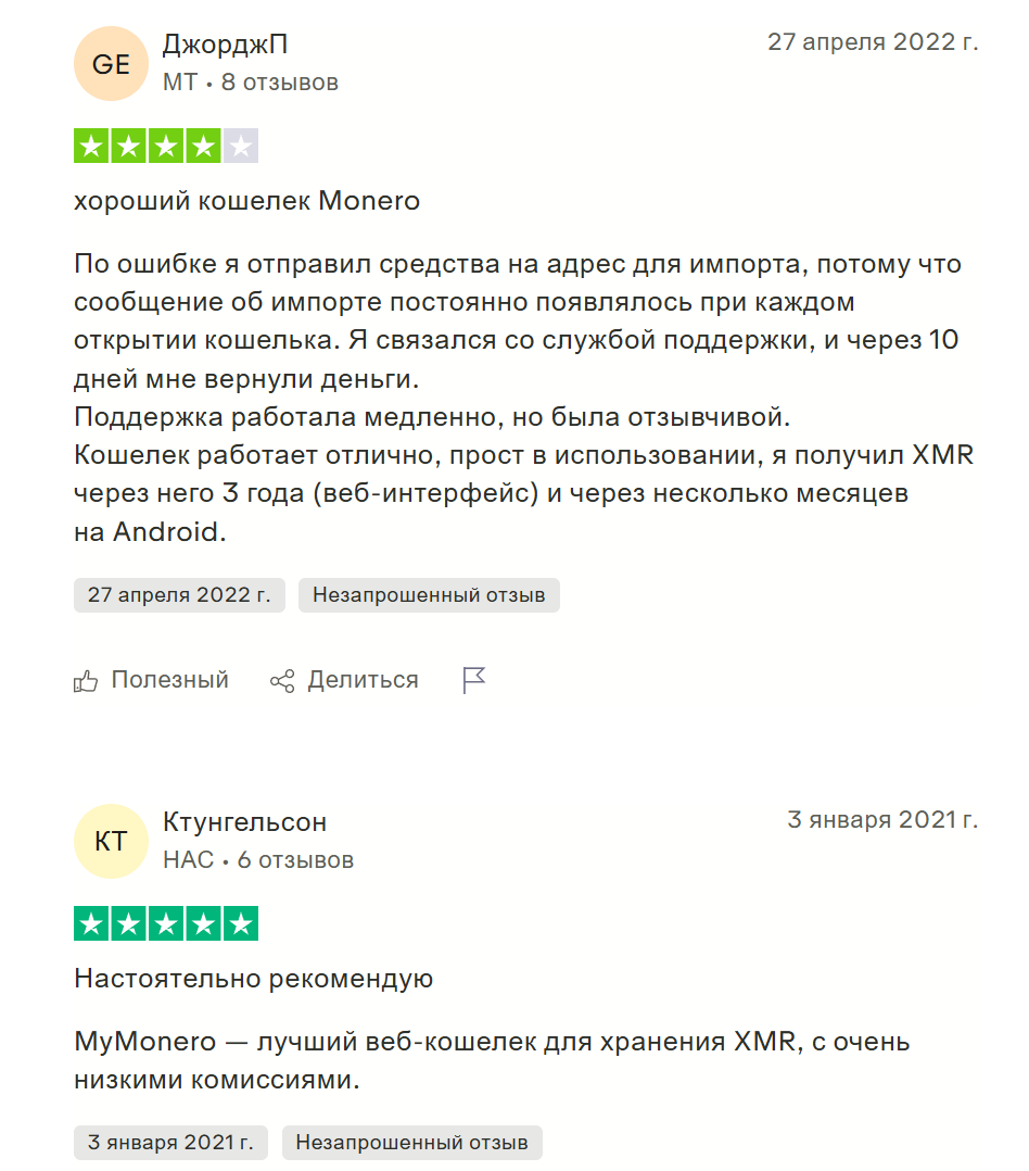 Встречаются и позитивные отзывы об онлайн-кошельке. В них пользователи отмечали удобство проведения сделок и надежную службу поддержки. Также клиенты заявляли об удобстве хранения XMR и крайне низких комиссиях.