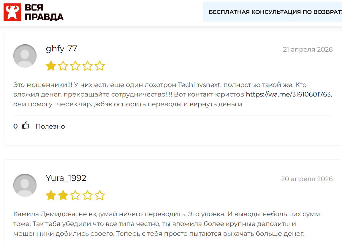 Если вы сталкивались с брокером Techinvssmart — напишите в комментариях. Это поможет другим принять взвешенное решение.
